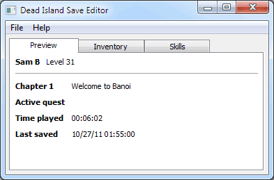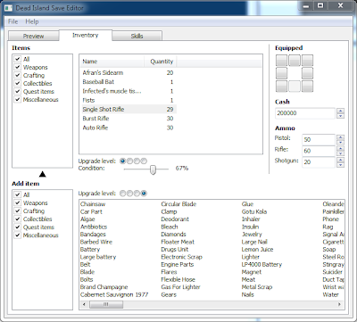 Dead Island Save Editor for the PC version of the game. Eventually, there will be support for Xbox 360 as well.