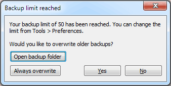 You can now either keep an unlimited or limited amount of backups, as well as automatically overwrite the oldest backups (if you have a limit).