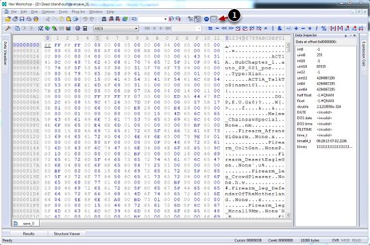 Here we have the hex editor with save_0 loaded and ready. Make sure to use Little Endian byte order (1).