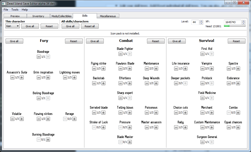 - Edit your skill trees. Add/Reset individual/all skill trees. Whether it works or not, you can also give one character's skills to to a different character.