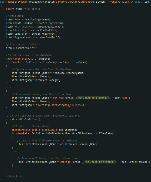 Of course, there's way more behind this code. Most of the code is just processing the data, and all that is something I have to figure out on my own by experimenting and studying the game's internal files (Inventory.scr, for example). If I'm lucky, some of you may give me tips as well. :)